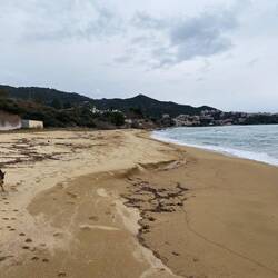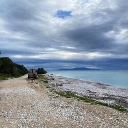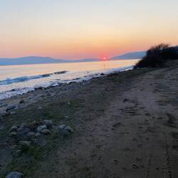 Ich möchte mir die große Burg in Platamonas ansehen und um das ganze auch für Luna + Leli interessant zu gestalten, starten wir einen Ort weiter in Pori und laufen die 6km am Strand entlang.Læs mere