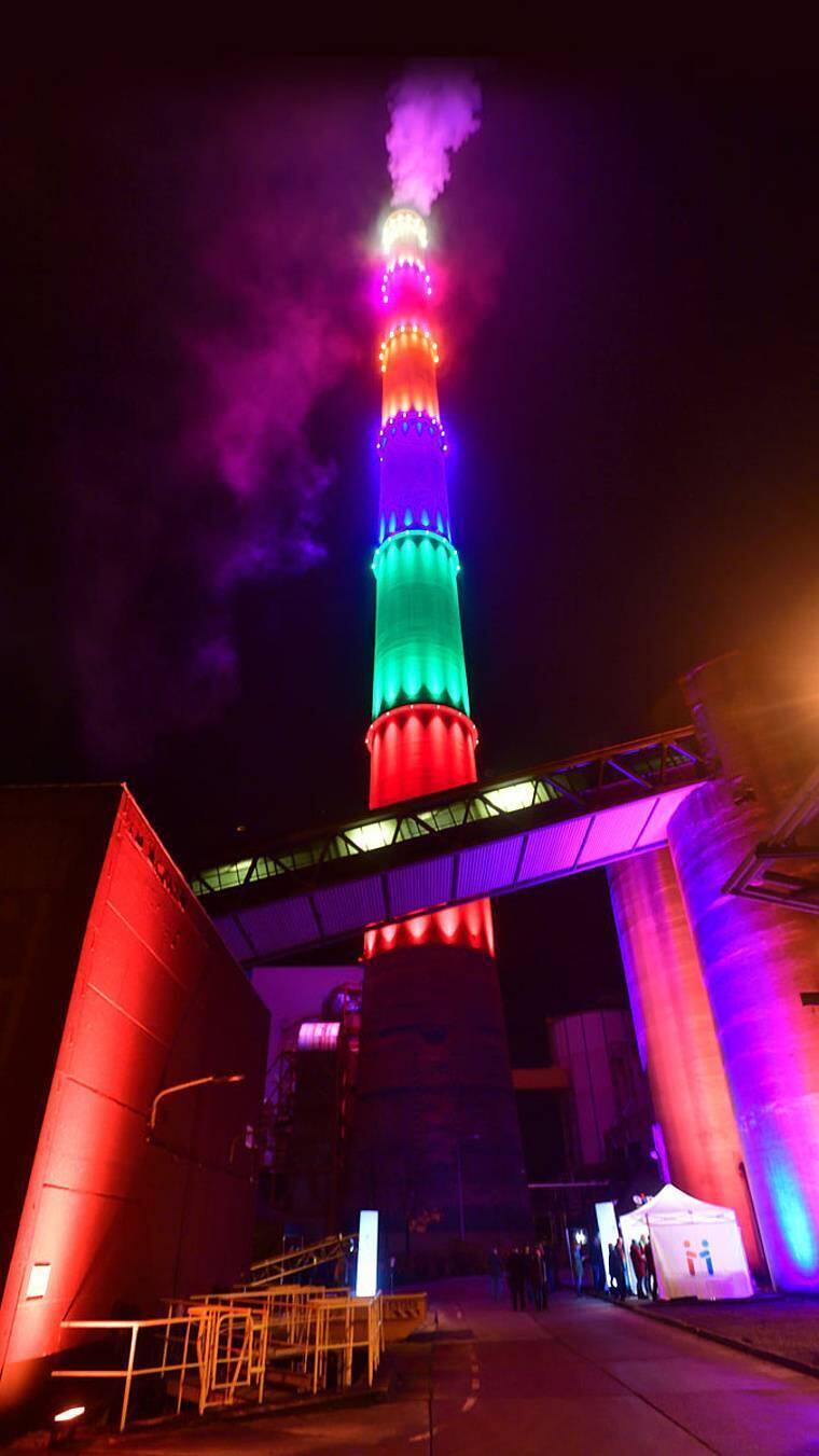 Der eins-Schornstein des Chemnitzer Heizkraftwerks leuchtete am 13. November 2017 das erste Mal in voller Größe. Insgesamt 168 LED-Leuchten erhellen das vermutlich höchste Kunstwerk der WeltRead more