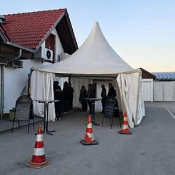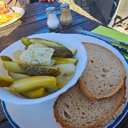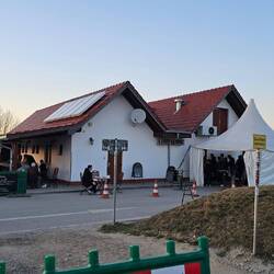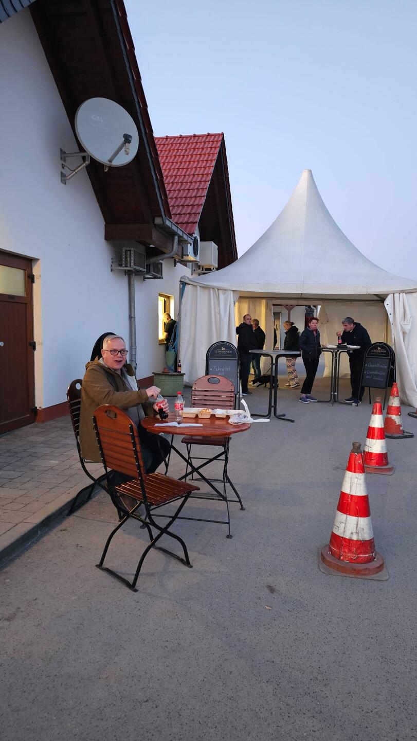 Wie immer halten wir bei Imbiss Haase in Magdala, um die leckeren Thüringer zu essen. Gerade wird dort umgebaut, deshalb werden die Gäste durch ein Fenster bedient.