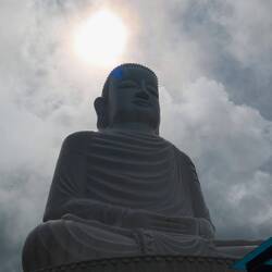 Weiter ging es zu einer tollen Tempelanlage mit großer Buddhastatue und einem "Himmelstor" - hier herrschte durch die Wolken um uns herum eine mystische Atmosphäre und wir genossen den An-und Ausblick. Zur Snackmahlzeit probierten wir uns an etwas neuem-zwei Sesambälle. Diese wurden frittiert und hatte eine süße