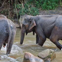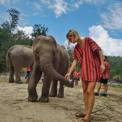 Wir durften die Riesen füttern, sie beim Spaziergang begleiten und zum Schluss sogar mit ihnen im Fluss baden. Dieses Erlebnis hat uns einen lang gehegten Traum erfüllt, denn Elefanten gehören zu unseren Lieblingstieren. Und diese aus nächste Nähe zu bestaunen und zu berühren war etwas ganz besonderes.