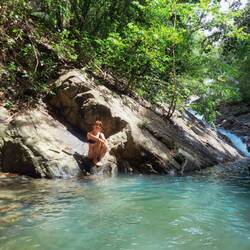Im Anschluss fuhren wir zu einem nahegelegenen Wasserfall. Hier waren wir allerdings schon wieder müde vom Tag und konnten uns nicht dazu überwinden ins Wasser zu gehen. Wir merken noch ganz schön deutlich, dass wir noch ein ganzes Stück von unserem gewohnten Energielevel entfernt sind.