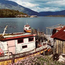 Als die letzten Kawesqar-Indianer zwangsweise sesshaft gemacht wurden, hat man sie im entlegensten Dorf Chiles angesiedelt, in Puerto Eden. Die nächste Stadt ist 24h mit dem Schiff entfernt, eine andere Anbindung gibt es nicht. Heute ist hier das chilenische Militär präsent, ebenso Fischer. Als unser Bord-Ethnologe Dietmar 2019 das letzte Mal hier war, traf er noch Kawesqar-Indianer, schätzungsweise 15 lebten noch hier, die sich an ihre Kindheit als Nomaden erinnern und die Sprache sprechen konnten. Von Anwohnern erfahren wir heute, dass es wohl mittlerweile nur noch zwei oder drei sind. Ihr Volk ist damit faktisch ausgerottet, und mit ihm seine Kultur, seine Sprache.