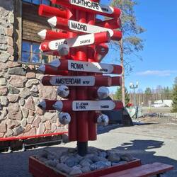 Da wir erst ab 17Uhr in unsere Unterkunft, 25 Minuten vom Zentrum entfernt, konnten entschlossen wir uns die Stadt direkt zu erkunden. Auto abgestellt und los ging es, am Ufer des Flusses entlang und durch die Straßen der "Stadt". Eher funktional gestaltet spiegelt Rovaniemi die Architektur des Nordens gut wieder. (Die komplette Stadt wurde im Krieg von den Nazis zerstört und niedergebrannt).