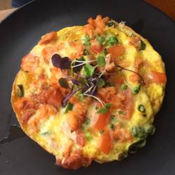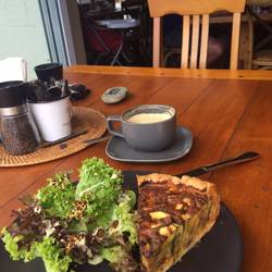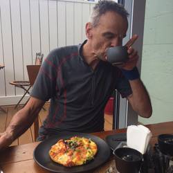 Nu wel koffie met een lekkere omelet met zalm voor Nico en een quiche voor mij.