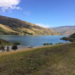 Vanaf Franktonloopt er een gravel pad naast het meer en is het nog 8 km naar QT.