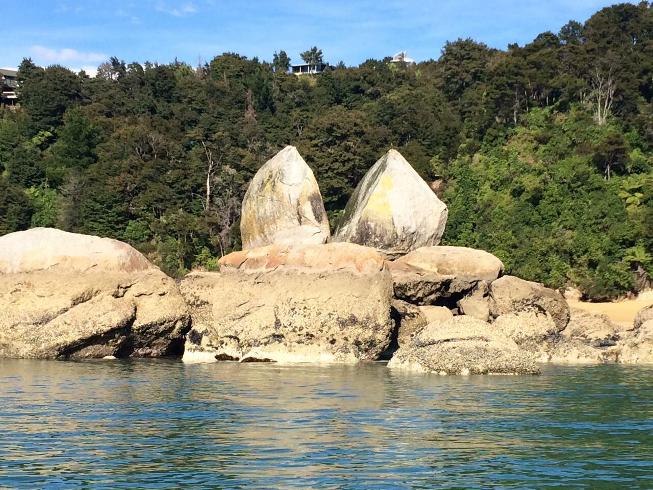 Voordat ik op de watertaxi stap zie ik de mooie kustlijn van Marahau in de ochtend.