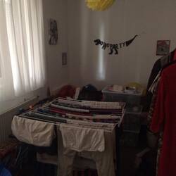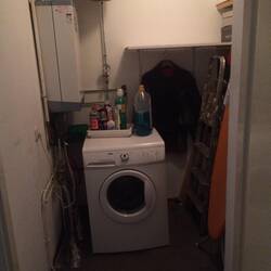 Je ziet het: de enige ruimte die tot nu toe opgeruimd is is het rommel/ washok wantBaca lagi
