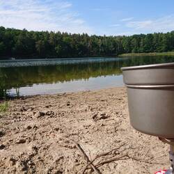 Letzte Nacht hat es geregnet somit hieß es mal wieder Zelt nass zusammen packen. Um 7 Uhr ging es dann los auf der Suche nach einem netten Platz zum frühstücken. An einer Badestelle am Caputher SeeLeggi altro
