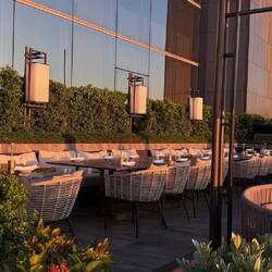 Am Abend Dinner im Nobu Restaurant, Rooftop Terrasse 58 Stock, erstklassige Qualität.