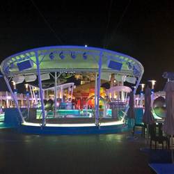 Am Abend haben wir dann an Bord in einem "Zirkuszelt" lecker gegessen und Akrobatik geschaut.