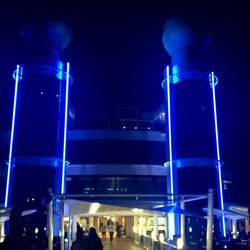 Nach 45 Minuten Zugfahrt sind wir nun am Hafen angekommen und sind nun"on board" unseres Schiffes Norwegian Epic. Ein riesiges Schiff mit 4621 Passagieren. Und das Schiff ist ausgebucht.