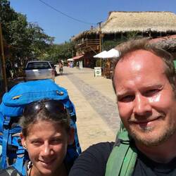 Morgens stellten wir uns in Puerto Escondido mit geschulterten Rucksäcken einfach an die Straße und warteten auf den nächsten Sammelbus, um weiter nach Zipolite zu fahren. Die Sammelbusse fahren regelmäßig und um mitfahren zu können, hebt man einfach die Hand.