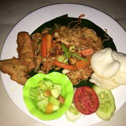 Im Ort selbst hatten wir abends dann das bisher beste Mie Goreng in Bali (gebratene Nudeln), so dass wir uns jeder direkt eine zweite Portion als Takeaway mit aufs Zimmer nahmen.