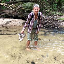 Dabei schlugen wir uns hoch und runter durch dichten Dschungel, wateten barfuß durch Flüsse und kamen ins Schwitzen, als wir uns an Lianen über umgestürzte Urwaldriesen hangelten und rissen uns dabei Hosen und Haut auf. Typisch... entweder ganz oder gar nicht ;)