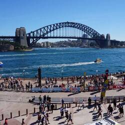 Nachdem Müsliriegel und Wasserflasche mit auf den Weg gegeben wurden, ging es weiter in die westlichen Hafengebiete Sydneys. Unter der Hafenbrücke durch ging es in eine lange Runde entlang der Promenade und selbige wieder zurück.