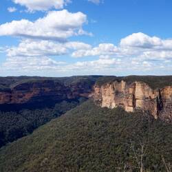 Vom Jamison Lookout bei den Wentworth Falls hatten wir eine tolle Übersicht in die Schlucht. Von dort zweigen einige Wanderwege ab, unter anderem einer, auf dem damals Charles Darwin 1836 bei seiner Forschungsreise unterwegs war.