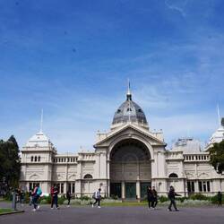 Das nächste Ziel waren die Carlton Gardens, ein großzügig angelegter Park in dem das „Royal Exhibiton Building“ steht. Von dort wurde das erste Mal die australische Flagge gehisst, aber heutzutage werden dort Kongresse und politische Sitzungen abgehalten und es ist an manchen Tagen zu besichtigen. An diesem Tag fanden aber offenbar Prüfungen der Melbourner Studenten statt, deshalb war es total überlaufen und für die Öffentlichkeit geschlossen.
