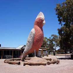 Auch wenn das Städtchen wirklich nicht groß ist, hat es einiges zu bieten. Dort gibt es neben einem schön gestalteten Silo und einer großen Galah-Statue (Rosa-Kakadu) ein Schild, was Reisende darauf hinweist, dass man sich gerade auf der Mitte der Strecke durch Australien befindet. Vom wo aus dies gemessen ist, wird zwar nicht verraten, aber da wird einem die Größe des Kontinents nochmals richtig bewusst. Wir haben hier und heute übrigens bereits knapp 15.000 km auf der Straße zurückgelegt.