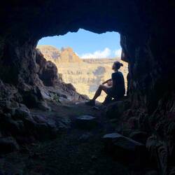 An der Felskante konnten wir über einen schmalen Pfad entlang des Berges direkt zu anderen kleineren Höhlen klettern. Manche von ihnen sind nur so von außen zu erreichen, andere wiederum sind durch kleine Stollen miteinander verbunden, durch die man fast auf allen Vieren kriecht und auch mal Klettern muss.