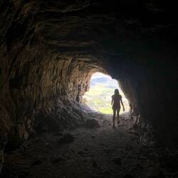 Aber die Anstrengungen haben sich allemal gelohnt. Ist man in der Höhle, öffnet sich ein tiefer, fast kreisrunder Schlund in den Berg hinein, der sich nach etwa 20m um eine Kurve windet. Mit Stirnlampen ausgerüstet, stand einer kleinen Entdeckertour nichts im Wege.