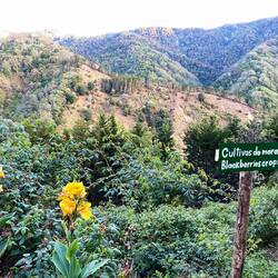 Nach etwa 20 Minuten und einem vollgeschwitzten Lenkrad kommen wir ein paar hundert Höhenmeter tiefer in dem Bergdorf Macho Mora an. Nur ein paar Hütten und Kühe. Vor jeder Hütte steht hier ein Geländemotorrad, die bei dieser Hanglange wohl auch beste Art sich fort zu bewegen. Die Dorfgemeinschaft lebt hauptsächlich vom Anbau und Verkauf verschiedener Obstsorten. „Mora“ bedeutet Brombeere und die wachsen hier wirklich überall.