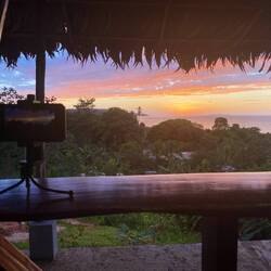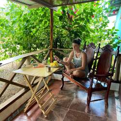 Von unserer eigenen Veranda aus können wir jeden Abend Vögel beobachten und den Sonnenuntergang genießen. Am Morgen gibt es den ersten Kaffee beim Sonnenaufgang mit Fernblick. Aufgrund der Höhe weht außerdem immer ein kleiner Windzug, abgenehm bei knapp 30 Grad Celsius.