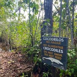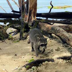 Neben dem Faultier kommen wir auch anderen Tieren ziemlich nahe. So schlendert einfach mal ein Waschbär seelenruhig auf uns zu, auf der Suche nach Futter.