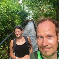 Zwischendurch regnet es recht stark, sodass wir uns die Jacken und Ponchos überziehen müssen. Darunter schwitzen wir aber nur noch mehr, denn bei über 30 Grad steigt die schwüle Hitze sofort auf und alles klebt nur noch an einem. Aber der Regenschauer ist nur von kurzer Dauer.