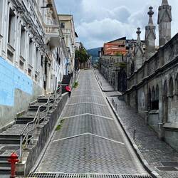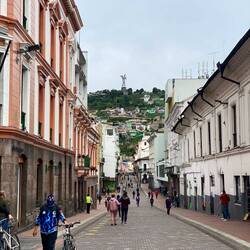 Glücklicherweise ist der Lockdown nun seit gut anderthalb Wochen vorbei, sodass wir uns ein wenig im historischen Zentrum der Stadt umschauen können. Was uns die nächsten Tage aber schwer zu schaffen machen wird, ist die dünne Höhenluft. Quito liegt auf 3000m und die Stadt selbst ist komplett in die Anden hineingebaut. Es wurde nichts begradigt, sondern die Straßen und Häuser einfach in die schräge der Berge hineingebaut. Nach ein paar Metern sind wir schon außer Atem und schnaufen, obwohl wir durchaus sportlich und trainiert sind.