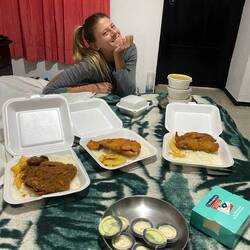 In den Abendstunden gehen wir in den umliegenden Restaurants essen. Es fällt auf, dass wie schon in Mittelamerika viel Bohnen, Reis und Hühnchen gegessen wird. Langsam freuen wir uns auf etwas mehr Abwechslung und sehnen uns nach den USA. Dafür ist das Essen hier recht günstig und man wird schon für 5 US-Dollar pro Person rundum satt.