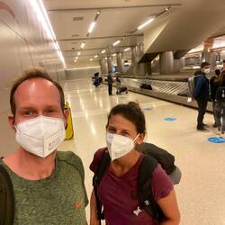 Wir landen am Nachmittag in Los Angeles. Kurz nachdem wir das Gate verlassen haben, geht es wieder die Treppe herunter, die wir bereits 2016 genommen haben. An der gegenüberliegenden Wand hing einstLeer más