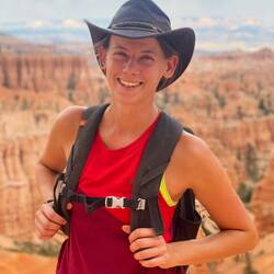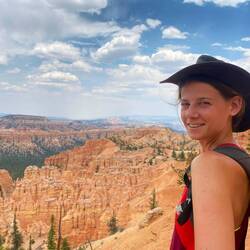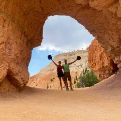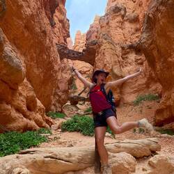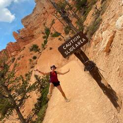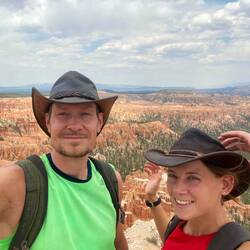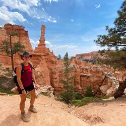 Wir starten unsere Wanderungen vom Sunset Point aus auf den Navajo Loop Trail, welchen wir direkt mit dem Peekaboo-Trail und schließlich dem Bryce Point zu einer sehr langen Wanderung kombinieren. Die Temperaturen steigen heute auf knapp 40 Grad und so haben wir jeder knapp 4 Liter Trinkwasser in den Rucksäcken und natürlich auch reichlich Sonnenschutz dabei.