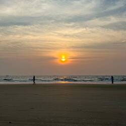 Es ist hier in Goa auch viel touristischer als zuletzt in Kerala und so ist der Strand gesäumt mit Bars, Liegestühlen und allerlei Verkäufern. Aber schaut man ein paar Meter abseits der Hauptzufahrten, so findet man schnell ein ruhiges Fleckchen. Der Strand ist zudem viel sauberer und es finden sich deutlich weniger menschliche „Notdurftreste“ im Sand. Hinzu kommen hier allerdings ein paar Kühe 🐄, mit denen wir den Strand gern teilen.