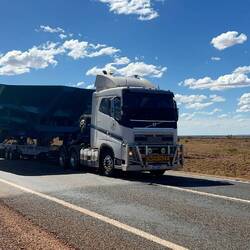 Die Straße ist von bis zu 60m langen Roadtrains hochfrequentiert, da es hier mehrere Minen gibt, aus denen das abgebaute Gestein regelmäßig abtransportiert werden muss. In den Kurven muss man entsprechend aufpassen, weil die Boliden einiges an Platz benötigen und kaum Spielraum zum Ausweichen haben.