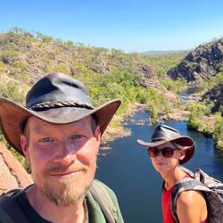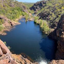 Im nördlichen Teil des Nitmiluk Nationalparks, oberhalb von Katherine, besuchen wir die Edith Falls (Leliyn).