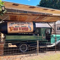 Auf dem Weg machen wir in Daly Waters Halt. In diesem urigen Ort entstand damals Australiens erster internationaler Flughafen, der später im 2. Weltkrieg als Militärflughafen genutzt wurde.