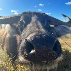 Später auf unserem Campingplatz lernen wir auch noch Buffy, den Wasserbüffel kennen, der mit seinen langen Hörnern zwar bedrohlich aussieht, sich aber über jede Streicheleinheit freut. 😅Read more