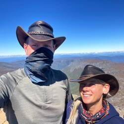 Als wir die letzten Meter bis auf das kleine Plateau erklimmen, nass geschwitzt von allen Anstrengungen, werden wir mit einer atemberaubenden 360 Grad Aussicht belohnt. Die Luft ist kalt und klar und die Sonne scheint uns warm ins Gesicht.