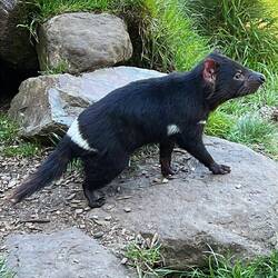 Diese nachtaktiven Beuteltiere sind Aasfresser und können ihr Maul bis zu 80 Grad weit aufreißen. Er ist nur so groß wie ein kleiner Hund, hat aber die stärkste Beißkraft der Welt. Knochen zu zerbeißen, ist für ihn kein Problem. Von seiner Beute, vornehmlich Aas, bleibt in der Regel nichts über. Es kommt wohl auch öfters vor, das Tasmanische Teufel im Bauch ihrer Aas-Beute übernachten, damit sie nach den Schlafen direkt weiterfressen können.