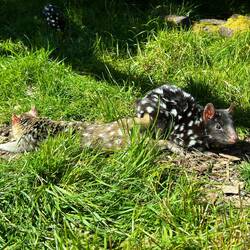 Quolls sind katzengroße, nachtaktive Beutelmarder und jagen sehr geschickt in Bäumen nach kleinen Vögeln.