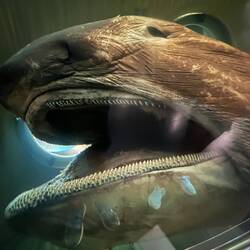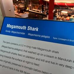 1988 wurde ein extrem seltener Megamouth Hai an die australische Küste angeschwemmt. Dank der damals sofortigen Konservierung in Formalin, später Ethanol und dann einer weiteren Lösung, ist der 5m Hai heute in einem Spezialbecken anzuschauen.