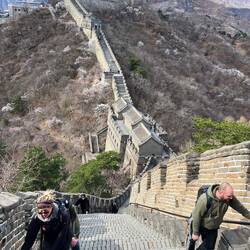 Wer allerdings hoch oben ist, muss ja irgendwann auch wieder runter, denn unsere Zeit an der chinesischen Mauer neigt sich langsam dem Ende entgegen. Wir machen uns auf den Rückweg. Das bekommen unsere Beine nach insgesamt 752m Auf- und Abstieg und unzähligen Treppenstufen ganz gut zu spüren.