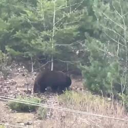 Aron sagt noch „Es wird langsam mal wieder Zeit einen Grizzly zu sehen“, da läuft keine 10 Minuten später einer am Berghand neben uns langsam kauend umher. Wir halten kurz an und freuen uns den Bären aus einiger Entfernung vor die Kamera zu bekommen. Wir sind uns erst nicht ganz sicher, ob es ein Grizzly oder ein Schwarzbär ist. Auf einem der Bilder erkennt man aber die für einen Grizzly typischen Schulterbuckel. Wir lassen uns aber natürlich gern auch eines besseren belehren 😜