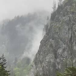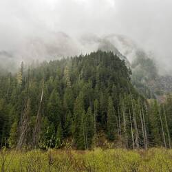 Ab Hope geht es auf den weniger befahrenen Highway 3 durch die Berge. Es wird in der Höhenlage sehr neblig und die kurvige Strecke müssen wir langsamer angehen. Die Landschaft ist wieder unglaublich schön.