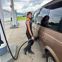 Nach einer ruhigen, aber verregneten Nacht steigen wir aus dem Auto und landen direkt in einer tiefen Pfütze. Als der Regen endlich etwas nachlässt, checken wir nochmal alle Flüssigkeiten wieLæs mere
