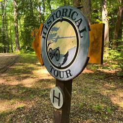 Zwischendurch stehen an den wichtigen Stellen Schilder, die gut beschriftet sind und das Geschehnis erklären.