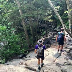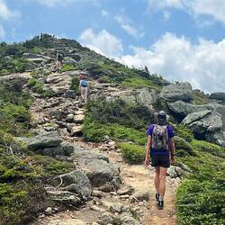 Der Aufstieg bei inzwischen bereits 25 Grad ist sehr schweißtreibend, aber die Wanderung zum Gipfel des Mount Washington vor 2 Tagen war ein gutes Training. Die Wanderungen sind durchaus ähnlich.