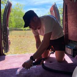 Der Innenraum braucht tatsächlich die meiste Aufmerksamkeit von uns, denn das Auto stand die letzten 2 Jahre hauptsächlich herum und das bei einem Farmer. Entsprechend müssen wir einen Termitenstamm im Bettrahmen verscheuchen und einige Holzteile ersetzen, finden eine Schlangenhaut und ein Mäusenest und haben diverse Ameisennester unter der Motorhaube. Auch Wespen 🐝 haben sich an der Karosserie breit gemacht.