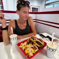 Hier bestellen wir direkt all unsere lang ersehnten Favoriten und genießen jeden Bissen😋 (In n Out Burger war übrigens auch der Grund für unsere lange Laufrunde heute Morgen)